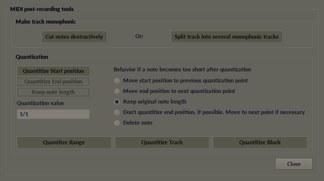 - Time signature and tempo tracks: