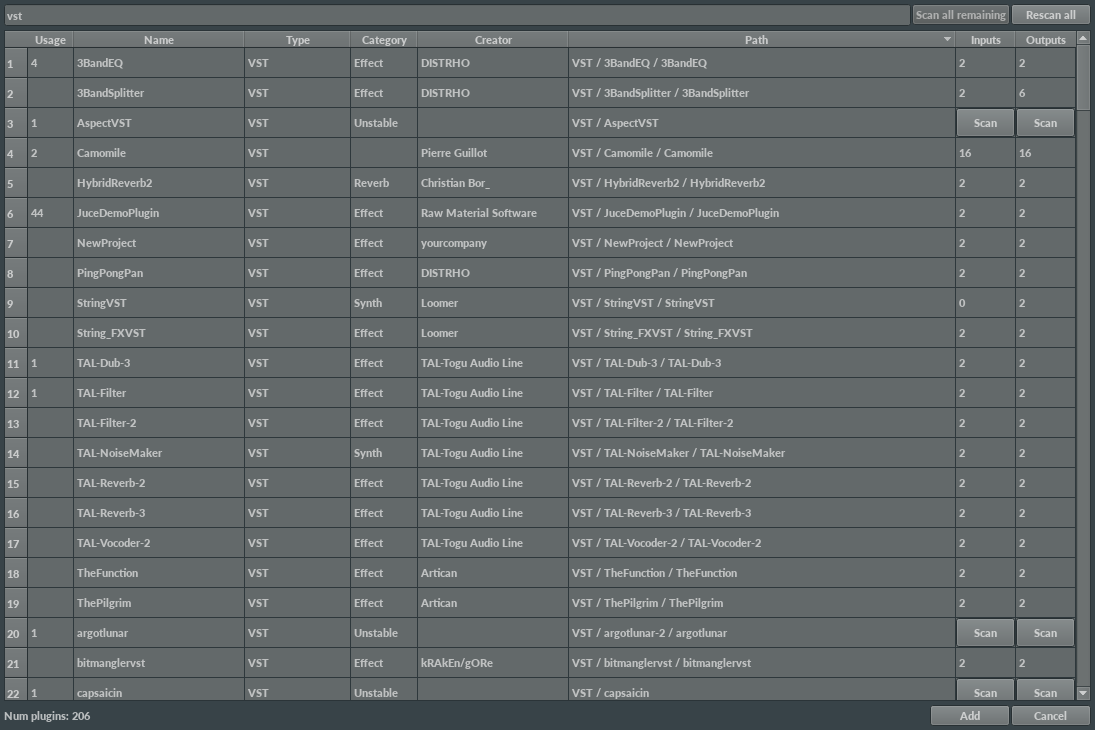 - Code to autocreate plugin GUIs are based on code from Qtractor. (Rui Nuno Capela)