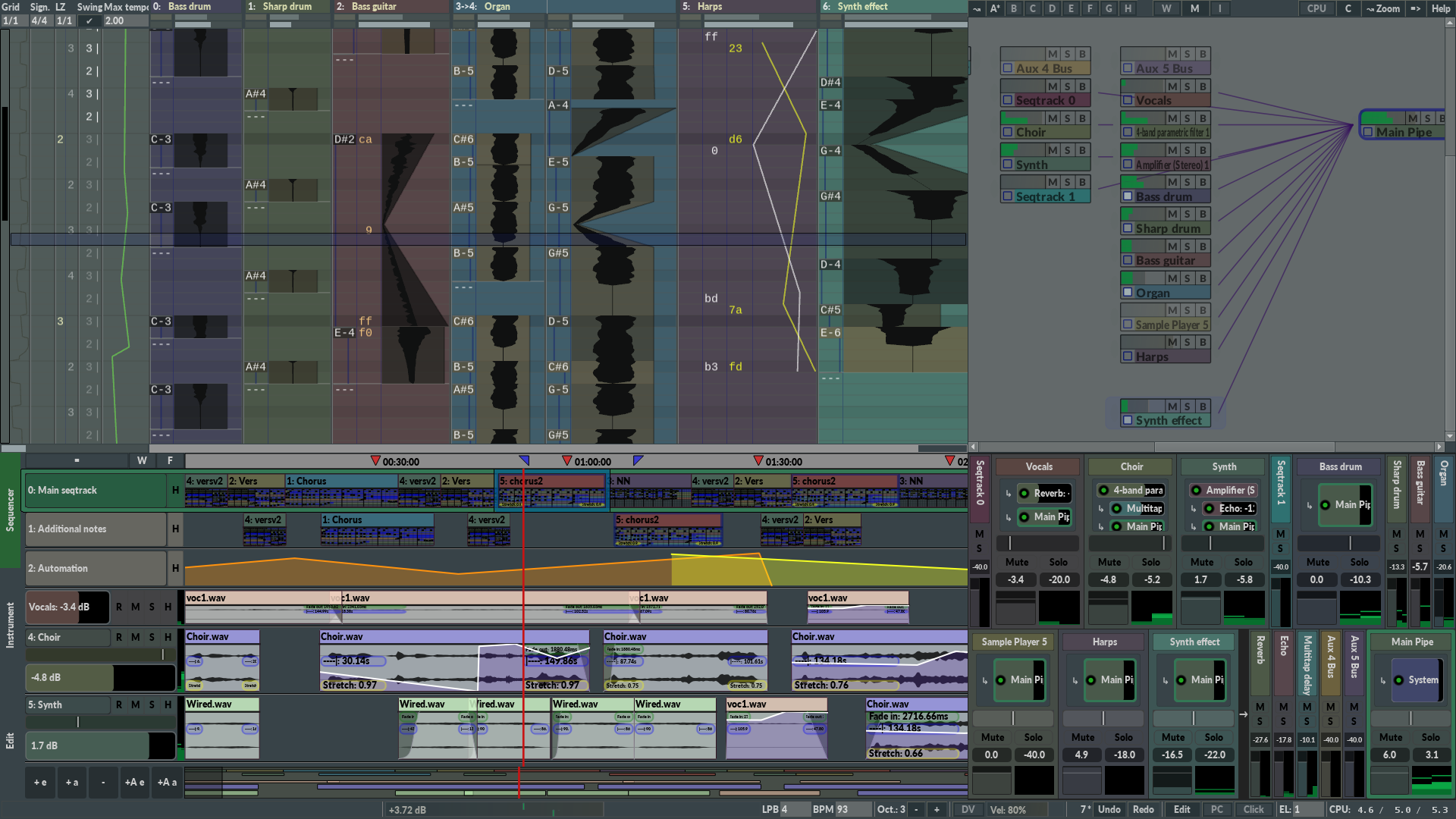- Mixer and instrument window: