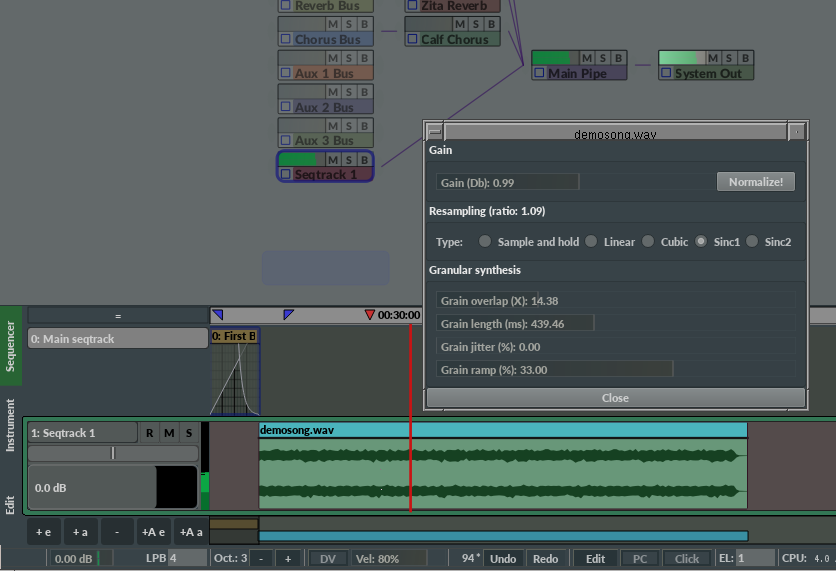 - The pitch shift effect uses the AM pitchshift Ladspa plugin made by Steve Harris.